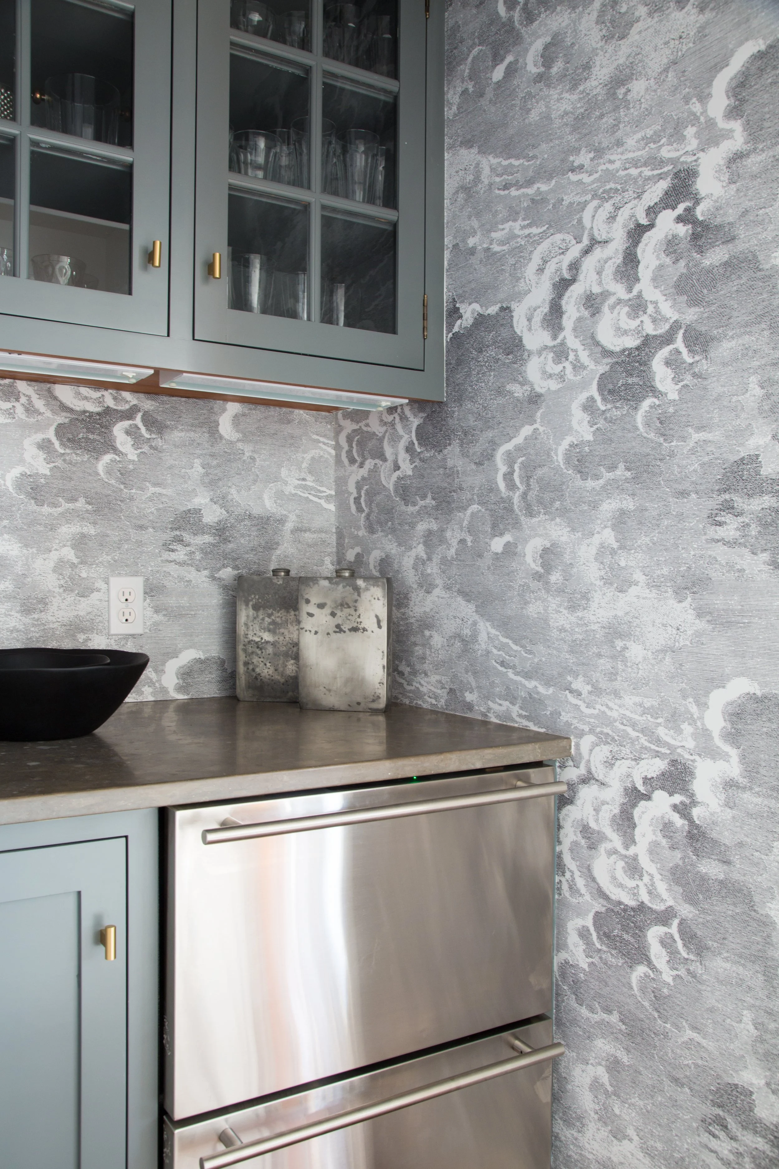 A few more images from this stunning home, including a peek into the Butler’s Pantry wrapped in Fornasetti's Iconic Nuvole Wallpaper.