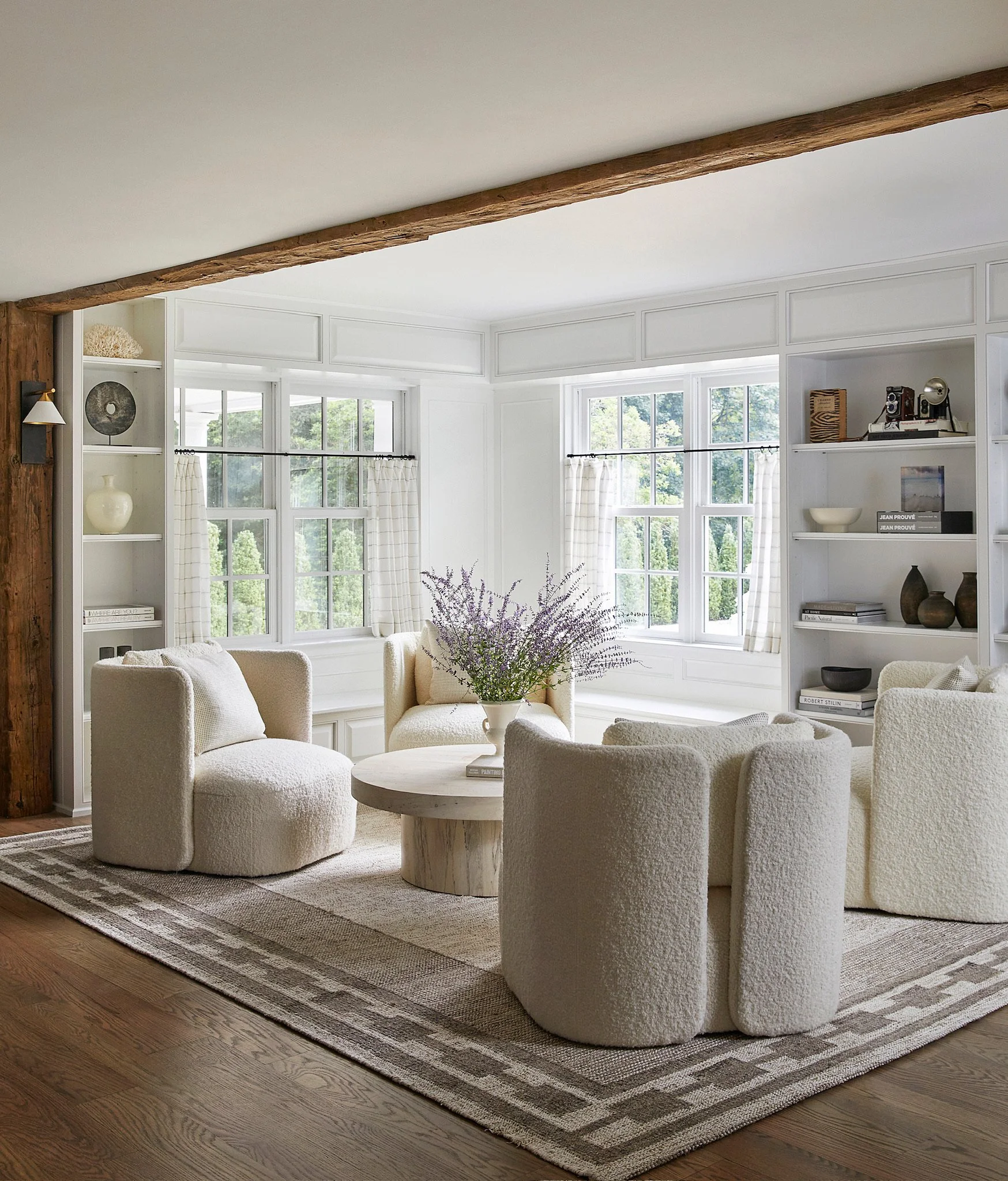 The formal living room balances history with softness, creating a space that feels both timeless and inviting.